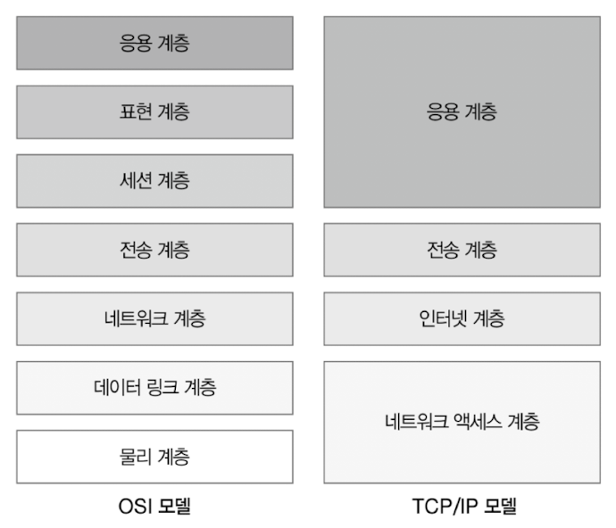 OSI 모델은 네트워크의 이론적 기술이 목적인 반면, TCP/IP 모델은 구현과 프로토콜에 중점을 둔 네트워크 참조 모델이다.