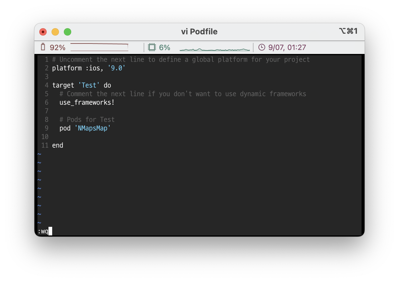$ vi Podfile